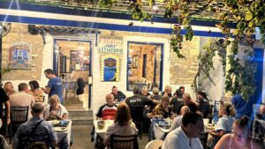 Der Abend klingt gemütlich aus – auch in Kalambaka gibt es typisch griechische Küche. An der Hauptstraße reihen sich Pubs, Eisdielen und Geschäfte aneinander.
