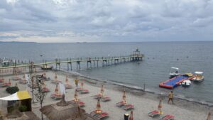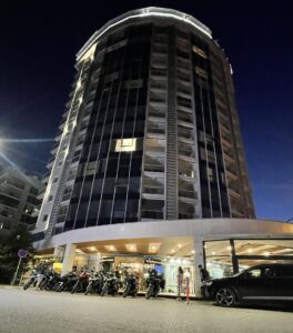 Ab nun kommen wir in einen Teil Albaniens der touristisch gar nicht genutzt wird, und daher auch sehr spartnaisch ist. Straßen sind als Bundesstraßen gekennzeichnet – gut möglich aber das es keinen Asphalt gibt. Schotterstraßen sind hier nichts Ungewöhnliches. Wir haben ständig Asphalt unter den Rädern und es erstreckt sich die Tiefebene um Tirana und Dürres vor uns. Dürres auch unser Ziel für heute! Tiefgarage und Hotel direkt in der ersten Reihe am Meer!! Abendessen in einem der viele Restaurants an der Strandpromenade. So lassen wir den Tag ausklingen!