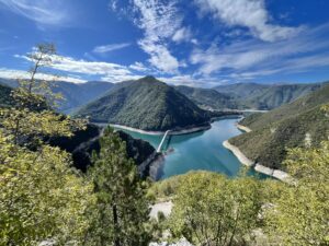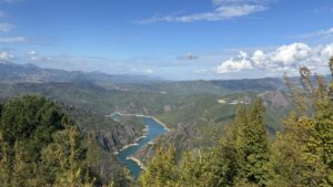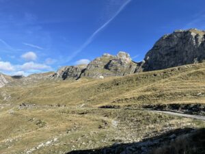 Wie am Tag zuvor – Frühstück auf der Terrasse am Meer! Wir müssen zuerst aus dem Verkehr, der zwischen den großen Städten herrscht raus! Aber dann sind wir wieder allein unterwegs. In den Bergen Nord-Albaniens. Über den ersten kleinen Pass ist die Straße noch eher in schlechtem Zustand – aber Asphalt! Dann beginnt ein schwarzes Asphaltband in bestem Zustand – die EU lässt grüßen!!! 😊