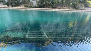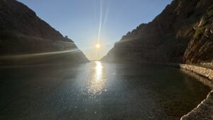 Die Grenze zu Albanien ist nur 15 Kilometer entfernt, und gestärkt geht es nun rein in ein unbekanntes Land. Schon nach 10 Kilometer geht’s wieder in die Berge – in die albanischen Berge, und ab Richtung Küste! Wunderbare Gegend. Die Straßen hier völlig ok! Nicht ausgebaut wie in Österreich oder Deutschland, aber in gutem Zustand. Wir kommen an die Küste und bestaunen die Natur Albaniens. Kurz vor unserem Hotel kommen wir noch am U-Boot Bunker des ehemaligen Herrschers Enver Hoxha vorbei. Unser Hotel liegt direkt am Meer! Vor dem Abendessen direkt am Strand gehen wir baden! Und beim einschlafen helfen die Wellen mit einem sanften Ton!