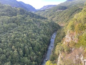 Wir brechen auf, durch die Tara-Schlucht bis zur berühmten Brücke mit den Zip-Lines. Wer Lust hat sich über die Schlucht schießen zu lassen - der hat hier die Gelegenheit dazu! Der Rest macht Fotos und schlürft einen Kaffee.