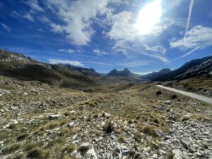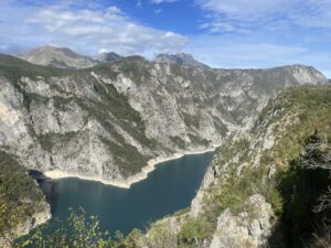 Nach der Pause ist es nicht mehr weit in den Durmitor Nationalpark. Kurvig, perfekte Straßen, und hinauf auf 2.000 Meter. Hier ist es Hochalpin – die felsigen Bergspitzen ragen noch weiter in den Himmel. Es geht runter in ein wunderschönes Tal! Unglaubliche Aussicht. Und da wo die Tara Montenegro erreicht verlassen wir Montenegro und fahren nach Bosnien-Herzegowina. Sarajevo ist unser Ziel! Großstadt, viele Kulturen und Religionen auf einem Fleck. Wir wohnen direkt in der Innenstadt. Abends die Altstadt ansehen, Essen gehen. Auch ein sehr Geschichtsträchtiger Platz ist ganz nah! Der Platz an dem Franz-Ferdinand und seine Sophie erschossen wurden - und damit der 1. Weltkrieg ausgelöst wurde. Danach noch in einer der vielen Kneipen den Tag Revue passieren lassen.